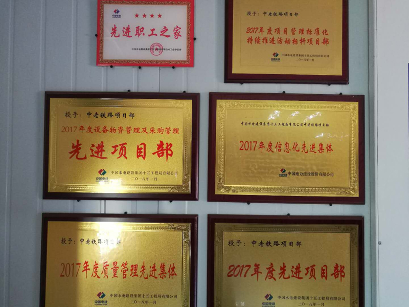 走進(jìn)十五局中老鐵路項(xiàng)目部會(huì)議室,映入眼簾的是掛滿了墻壁的牌匾和獎(jiǎng)狀。