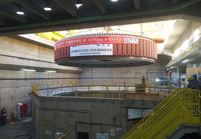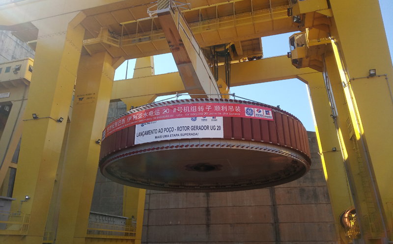 巴西伊利亞水電站升級(jí)改造項(xiàng)目首臺(tái)發(fā)電機(jī)組轉(zhuǎn)子順利吊裝