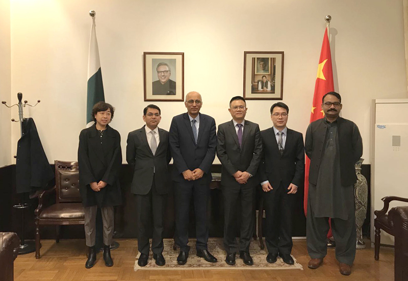 巴基斯坦駐華使館公使/副館長法入客?艾赫邁德,歐亞區(qū)域總部市場部副總經(jīng)理?xiàng)罱ǘ嗉跋嚓P(guān)人員參加會見。