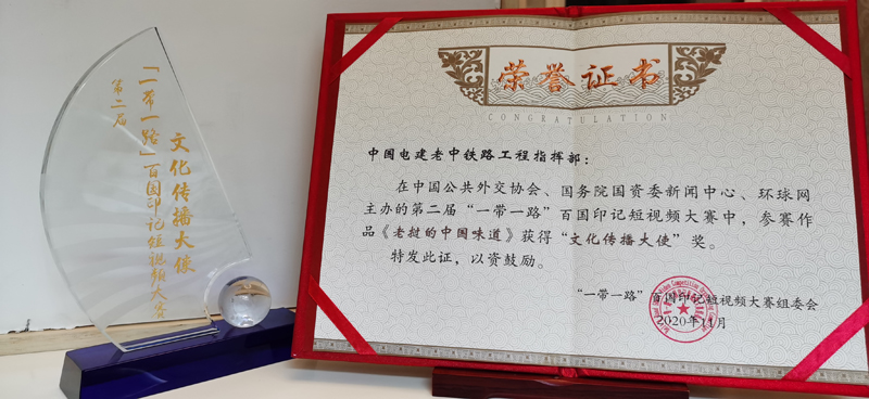 11月20日,由中國公共外交協(xié)會、國務(wù)院國資委新聞中心和環(huán)球網(wǎng)聯(lián)合主辦的第二屆“一帶一路”百國印記短視頻大賽頒獎典禮在武漢舉行,中國公共外交協(xié)會會長吳海龍、國務(wù)院國資委新聞中心副主任張義豪、湖北省委宣傳部一級巡視員榮罕君、環(huán)球時報副總編輯謝戎彬出席了頒獎典禮并致辭。此外,多國駐華使館外交官、部分獲獎中央企業(yè)代表以及多國媒體記者也參加了此次活動。公司報送的來自中老鐵路視頻作品《老撾的中國味道》和《老撾翻譯阿爽的成長故事》分別榮獲“文化傳播大使獎”和“優(yōu)秀作品獎”。